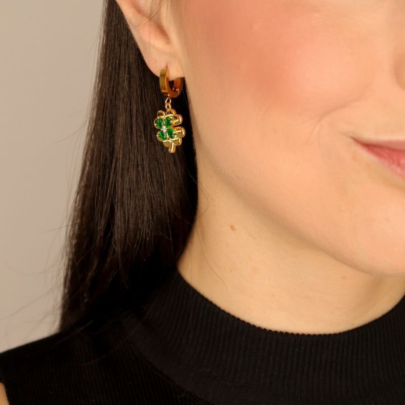 Argola Trevo com Pedra Verde em Aço Inox (Linha Premium)