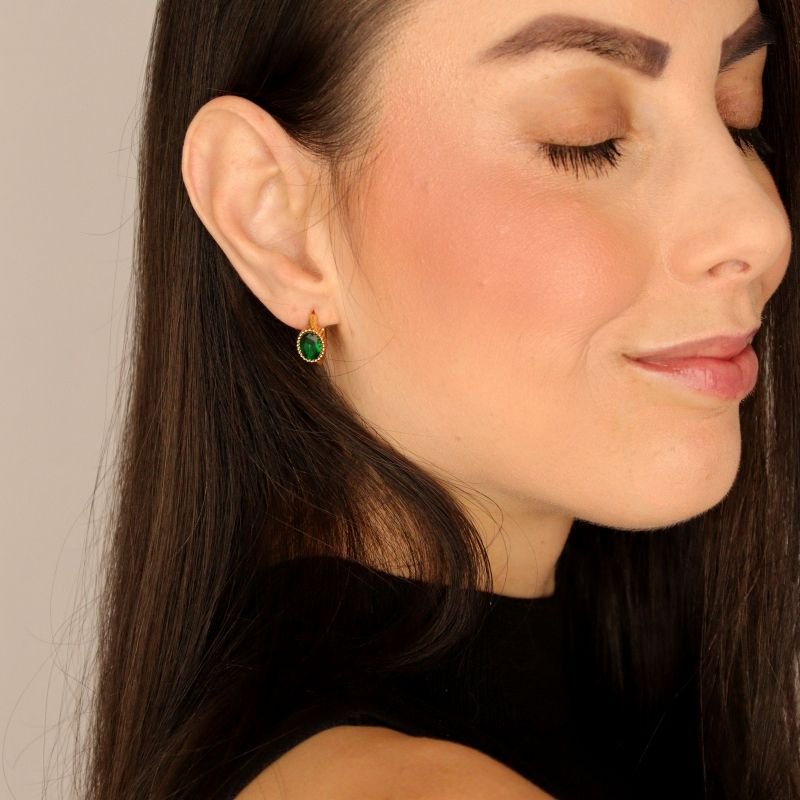 Argolinha com Pedra Verde em Aço Inox (Linha Premium)