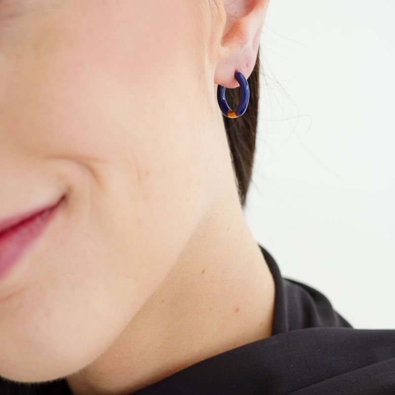 A Argolinha Navy Resin une a elegância do azul marinho à praticidade do fecho click em aço inox. É o acessório perfeito para quem busca um toque de cor clássico, discreto e extremamente durável.