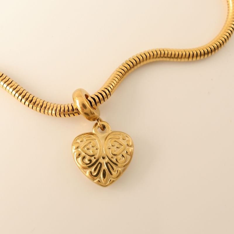 Berloque em Aço Inox Coração com Texturas Peso 7g