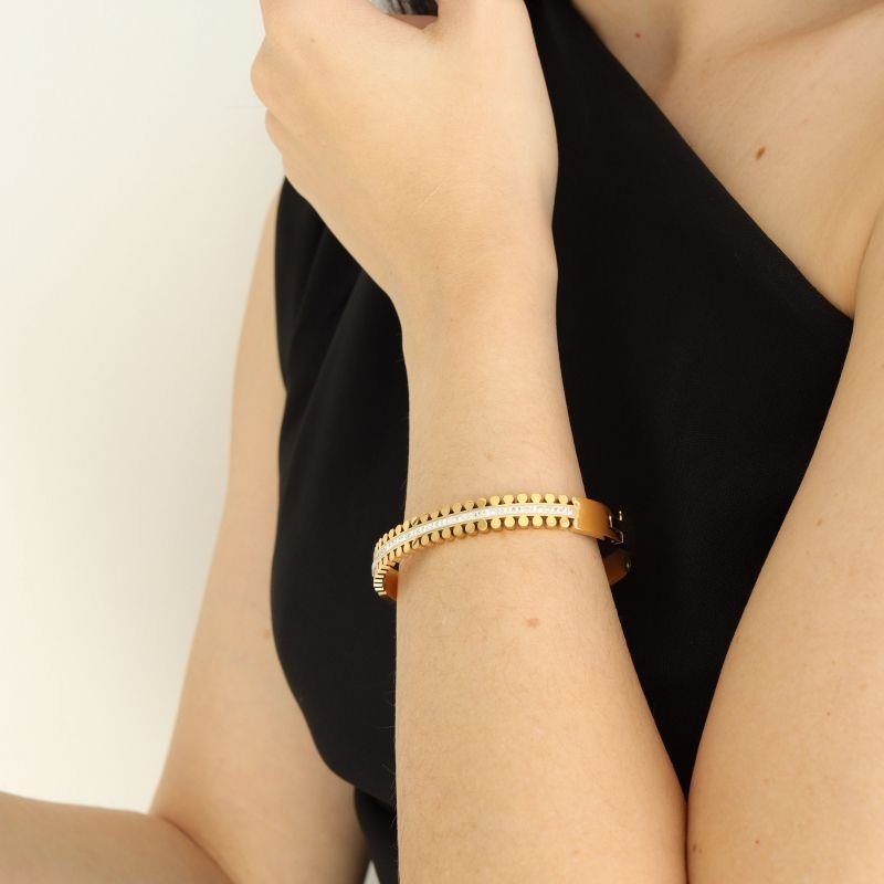 Use sozinho como peça de destaque para um visual clean e sofisticado ou combine com pulseiras finas/relógio para um mix moderno. Transita facilmente do dia a dia a ocasiões especiais.