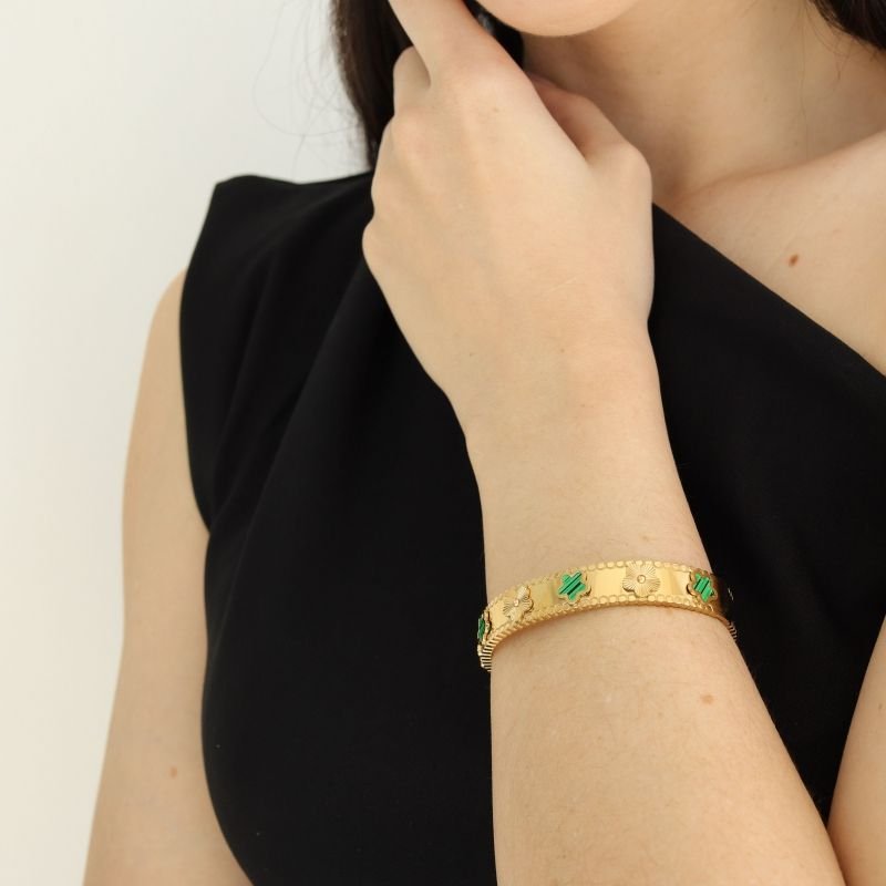 O Bracelete Trevo e Flor em Aço Inox (Linha Premium) reúne delicadeza e significado em uma única peça. Os símbolos de trevo e flor equilibram sorte e romantismo com elegância discreta — perfeito para acompanhar o dia a dia ou compor looks mais refinados.