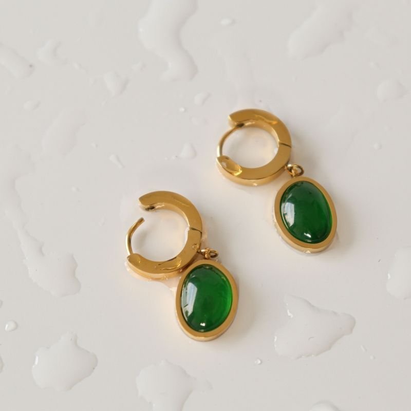 2. Brinco Argola com Pedra Verde em Aço Inox