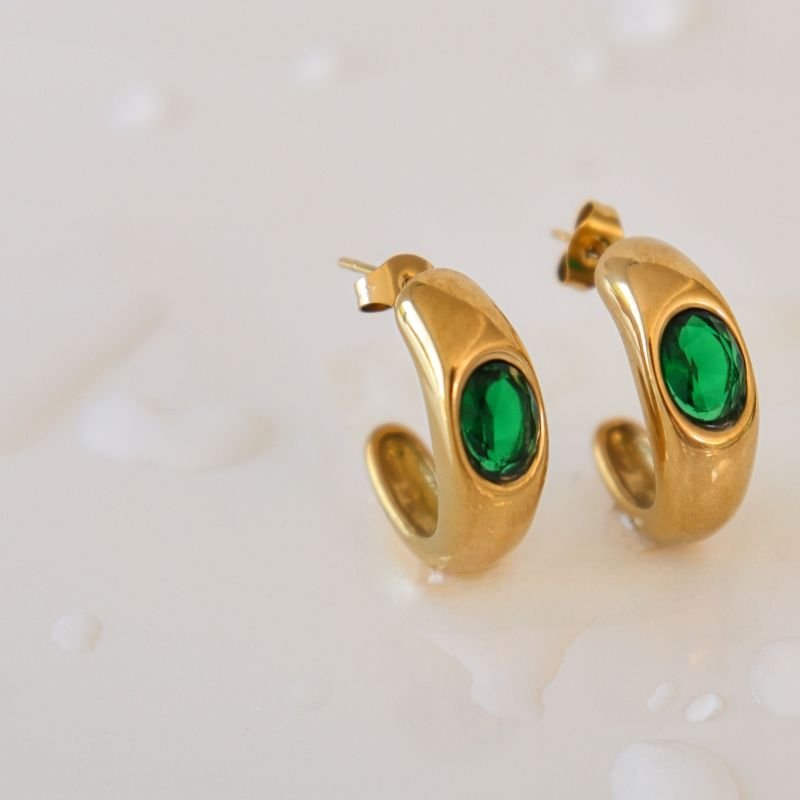 Brinco Argola Minimalista Verde em Aço Inox (Linha Premium)
