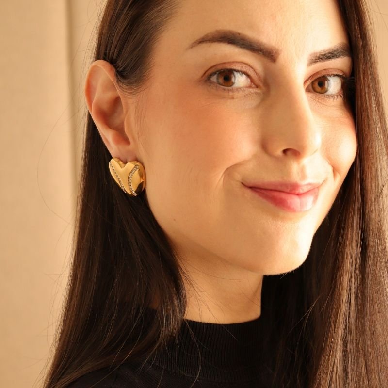 2. Brinco Coração com Strass em Aço Inox (Linha Premium)