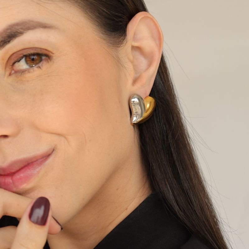 - Brinco Coração Mistura de Banhos em Aço Inox (Linha Premium)