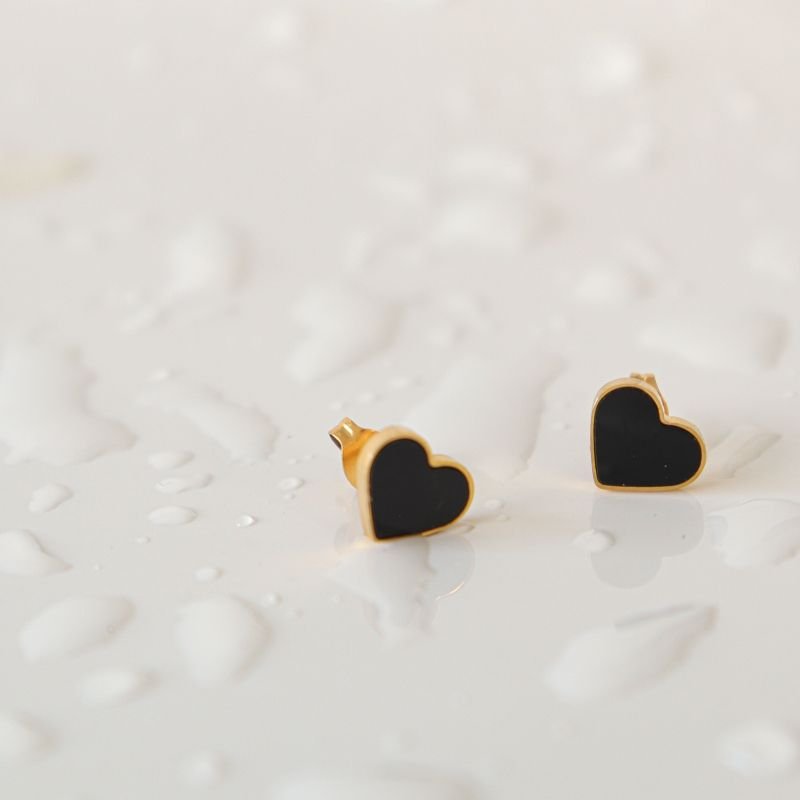 Brinco Coração preto Pequeno em Aço Inox