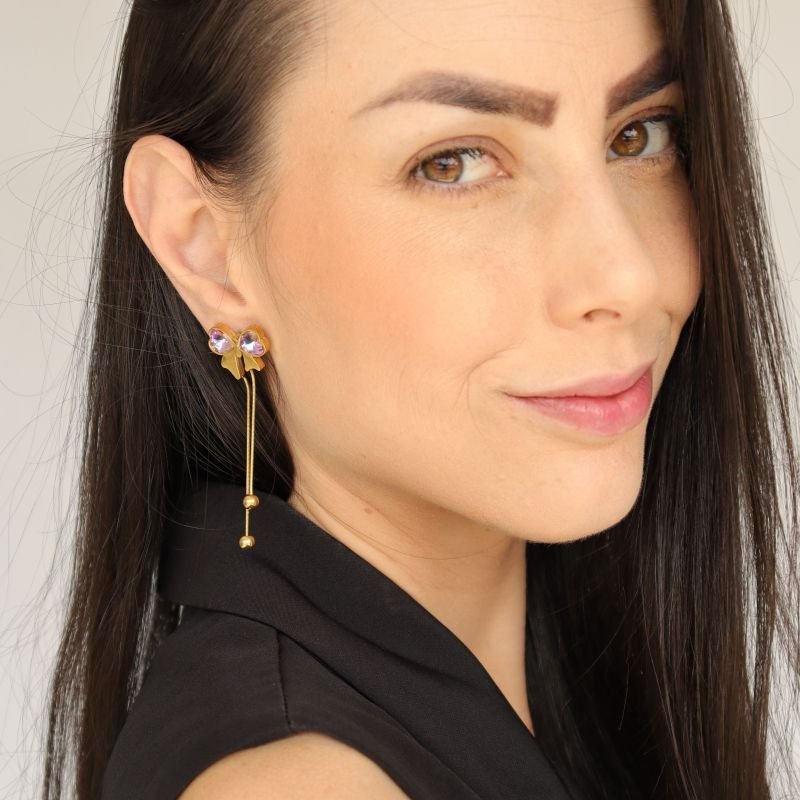 Brinco Laço Acrílico em Aço Inox (Linha Premium)