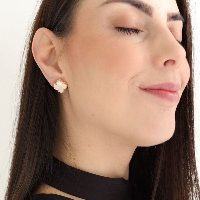 O Brinco Médio Van Cleef Off White Inspired em Aço Inox é a escolha perfeita para quem busca um acessório elegante e versátil. Inspirado no clássico design Van Cleef, seu detalhe em off white adiciona sofisticação e delicadeza, tornando-o ideal para composições que vão do dia a dia a produções mais refinadas.