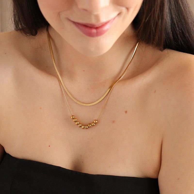 Colar Duplo Minimalista Esferas em Aço Inox (Linha Premium)