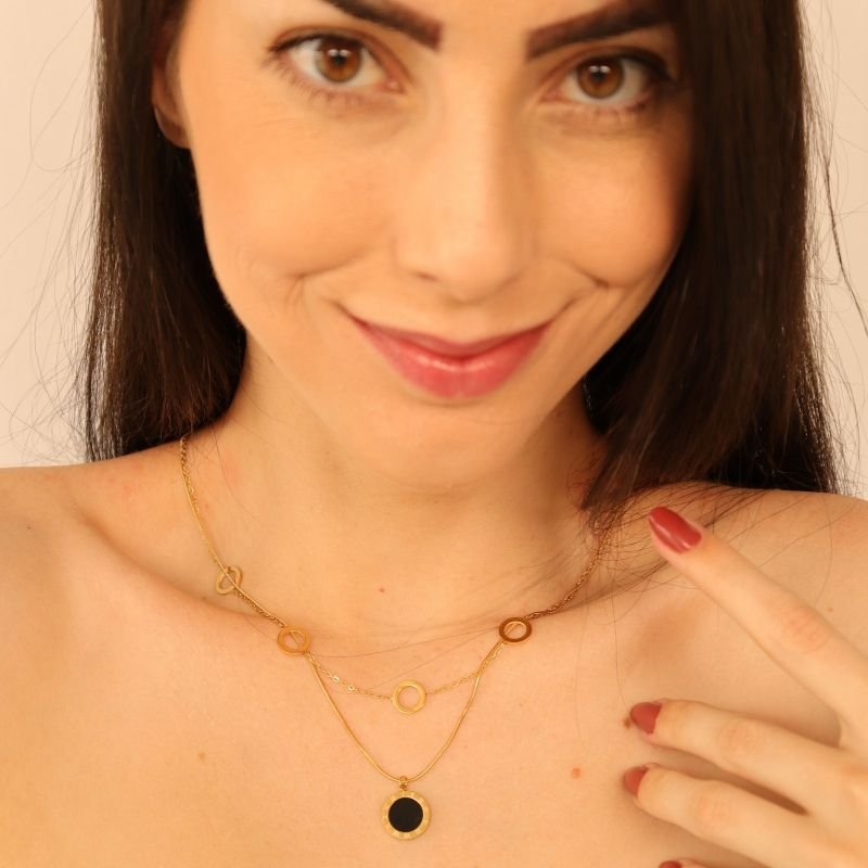 Colar Duplo Número Romano em Aço Inox (Linha Premium)