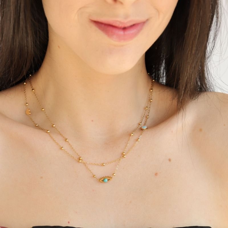 Colar Duplo Olho Grego em Aço Inox (Linha Premium)