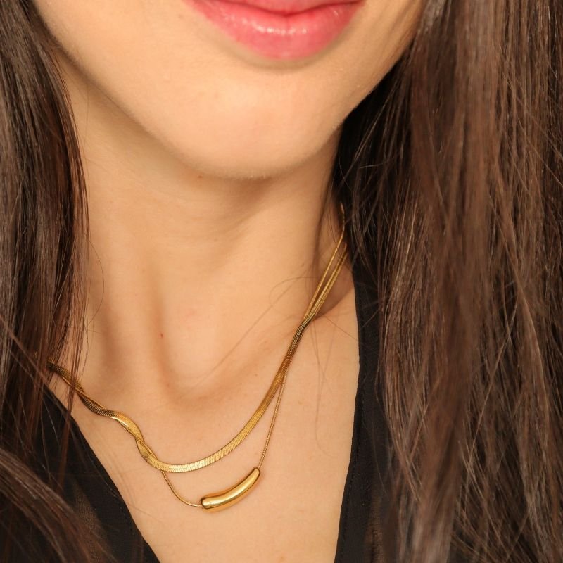 Colar Duplo Orgânico em Aço Inox (Linha Premium)