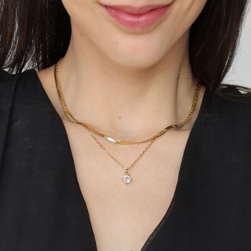 Colar Duplo Ponto de Luz em Aço Inox