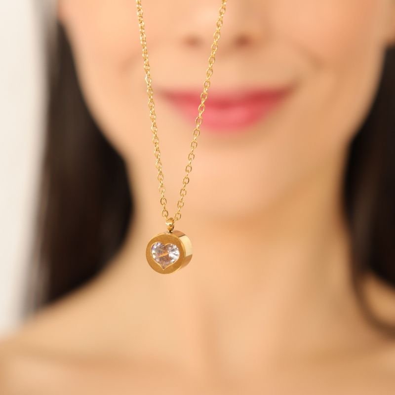 Colar Esfera com Coração Dentro em Aço Inox (Linha Premium)