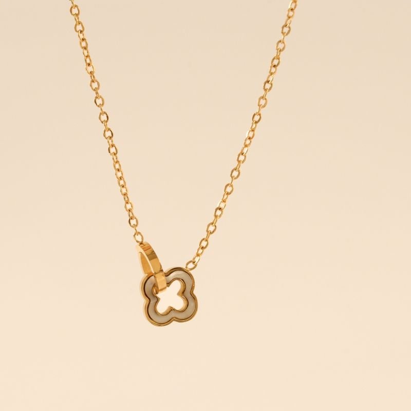 Colar Flor Resinada Branca com Detalhe em Aço Inox