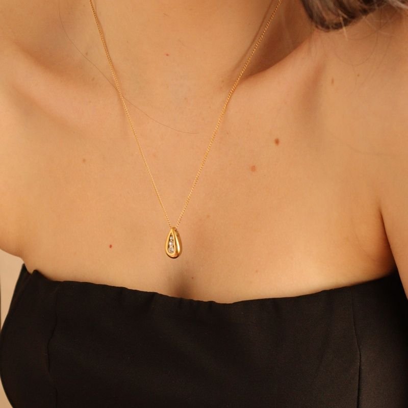 Colar Gota Delicado Pedrinhas em Aço Inox