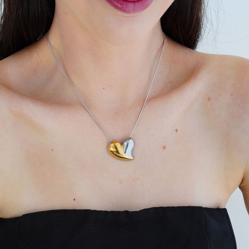 Esta peça da nossa Linha Premium é a tradução da modernidade, apresentando o clássico pingente de coração em uma composição exclusiva de mistura de banhos. O contraste entre os tons harmoniza o design de forma sofisticada, resultando em um acessório versátil e de alto padrão, ideal para quem busca uma joia em aço inox que se destaca pela originalidade e pelo brilho impecável.