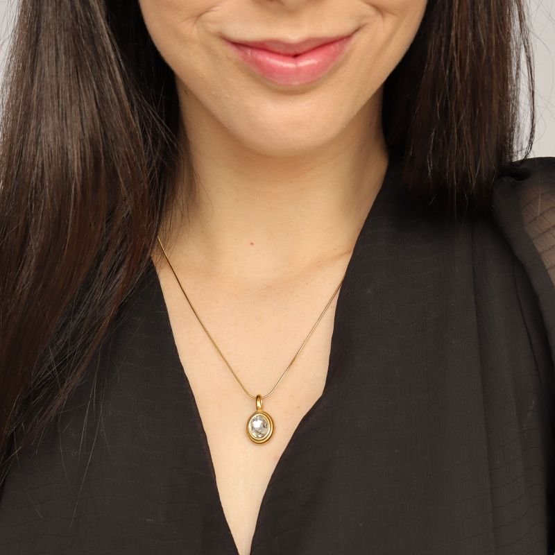 Colar Pedra Cristal em Aço Inox (Linha Premium)
