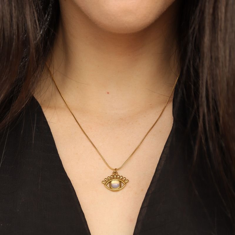 Colar Pedra Olho Grego em Aço Inox (Linha Premium)