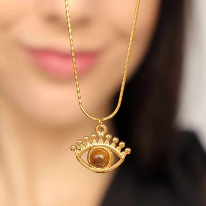 Colar Pedra Olho Grego em Aço Inox (Linha Premium)
