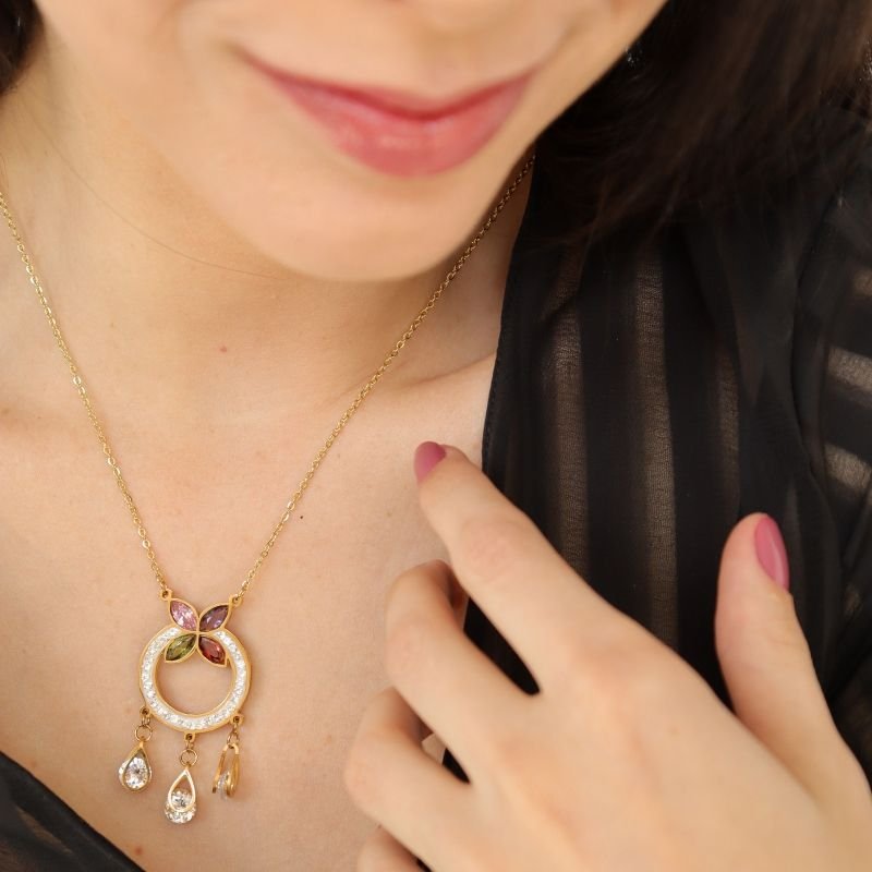 Colar Pedras e Cravejado Borboleta em Aço Inox (Linha Premium)