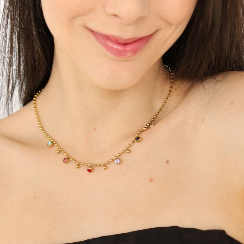 Colar Pedrinhas Coloridas em Aço Inox (Linha Premium)