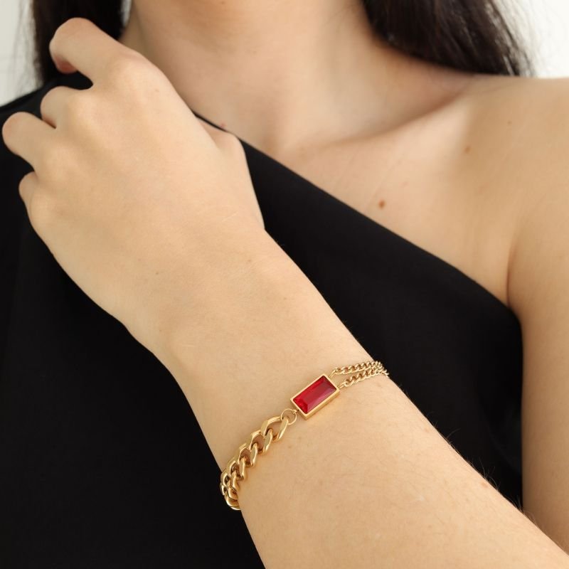 A Pulseira Corrente com Pedra em Aço Inox (Linha Premium) une presença e delicadeza. A corrente valoriza o pulso com estilo moderno, enquanto a pedra acrescenta um toque de brilho sutil — perfeita para elevar o visual do dia a dia ou composições mais elegantes.