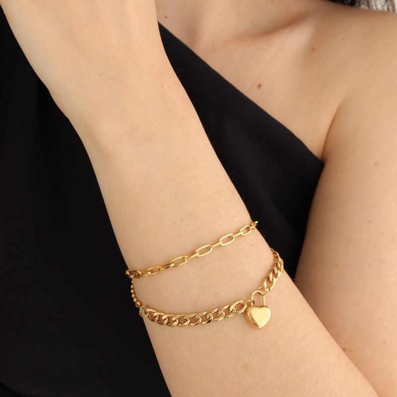 Use sozinha para destacar o coração no pulso ou combine com outras pulseiras finas para um mix moderno. Fica linda com relógio minimalista, braceletes discretos e anéis de coração ou ponto de luz. Para um conjunto harmonioso, coordene com colar curto e brinco pequeno, mantendo o foco no detalhe romântico.