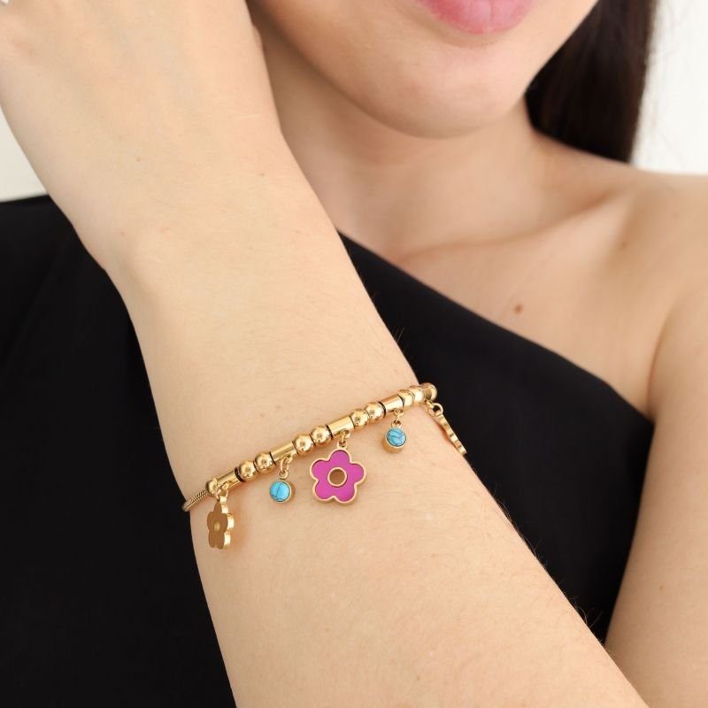 Use sozinha para evidenciar o detalhe de flor ou combine com berloques estilo Pandora para personalizar a peça com significado. Também pode ser usada junto a outras pulseiras finas para um mix moderno e delicado.