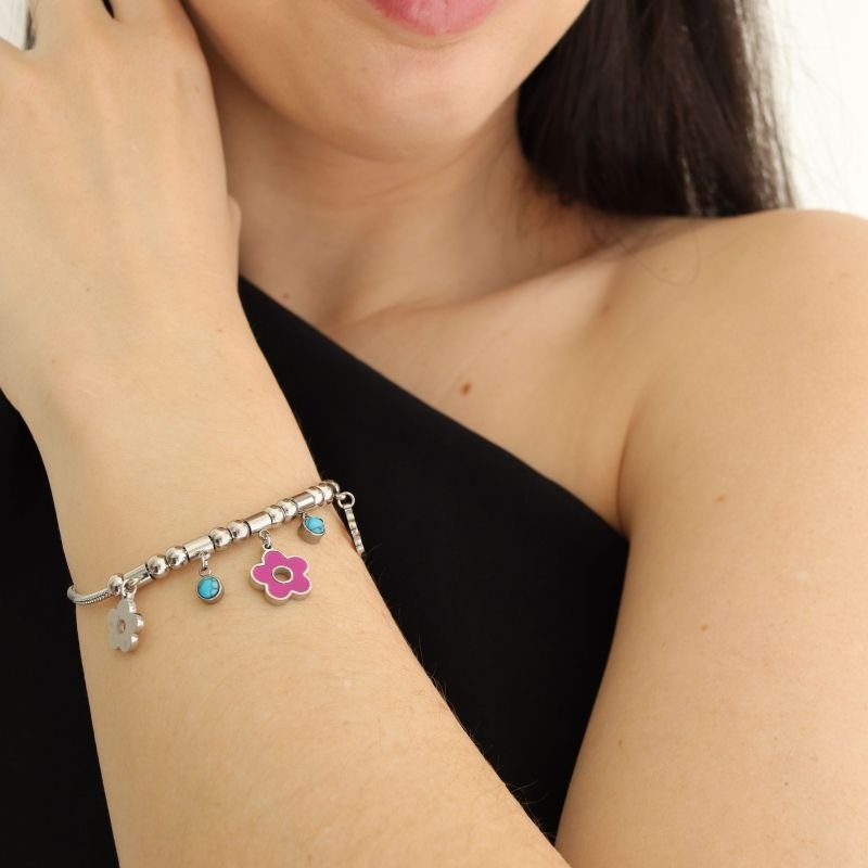 A Pulseira Estilo Pandora Flor em Aço Inox (Linha Premium) é delicada e cheia de significado. O detalhe de flor traz um toque romântico e elegante, perfeito para o uso diário e para composições mais sofisticadas. Versátil e resistente, acompanha sua rotina sem preocupações.