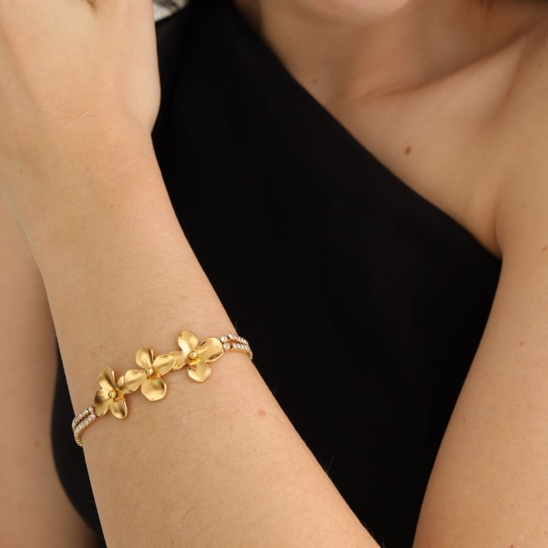 A Pulseira Flor com Detalhes em Aço Inox (Linha Premium) é delicada e charmosa. O motivo floral acrescenta romantismo sutil ao pulso, garantindo um toque elegante que transita com facilidade do dia a dia a ocasiões especiais.