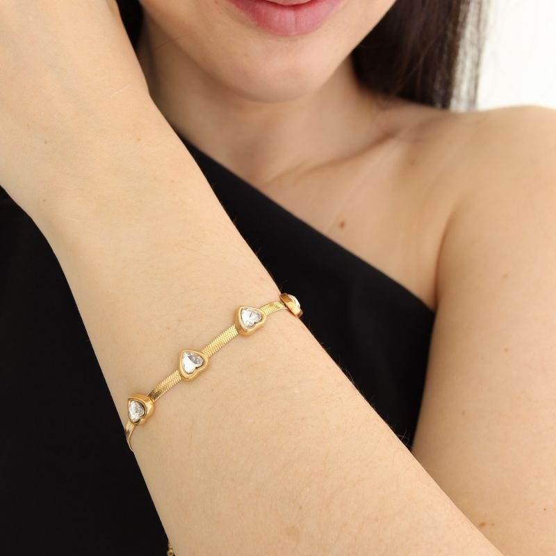 Use sozinha para valorizar o detalhe de coração com brilho ou combine com pulseiras finas para um mix romântico e moderno. Funciona muito bem com relógio e transita com facilidade do casual ao elegante.