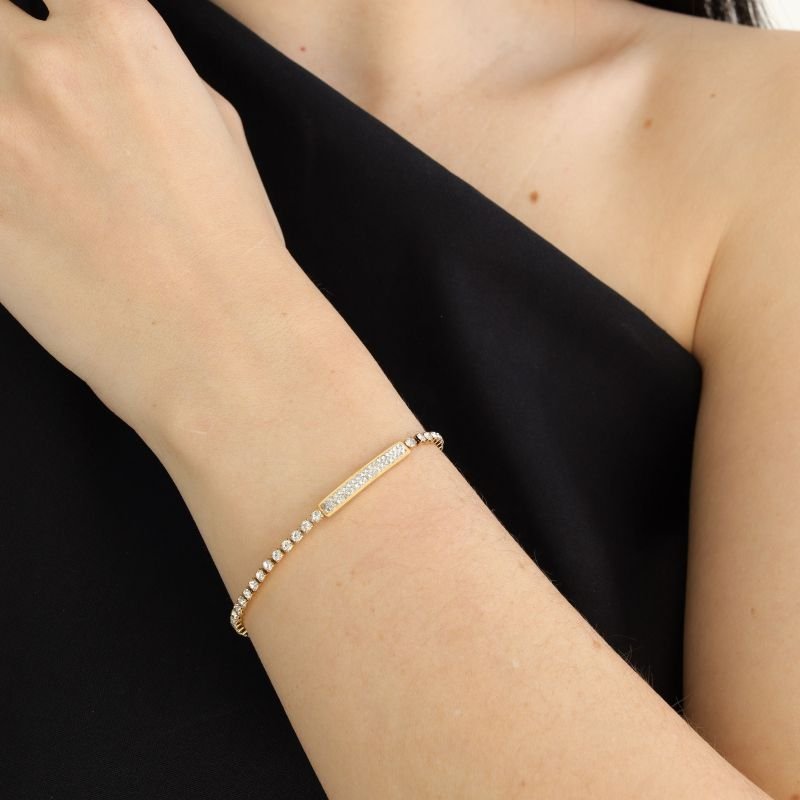 A Pulseira Riviera Cravejada em Aço Inox (Linha Premium) entrega brilho contínuo e elegância atemporal. Delicada e sofisticada, ilumina o pulso com sutileza, perfeita para usar do dia a dia a ocasiões especiais sem perder o ar moderno.