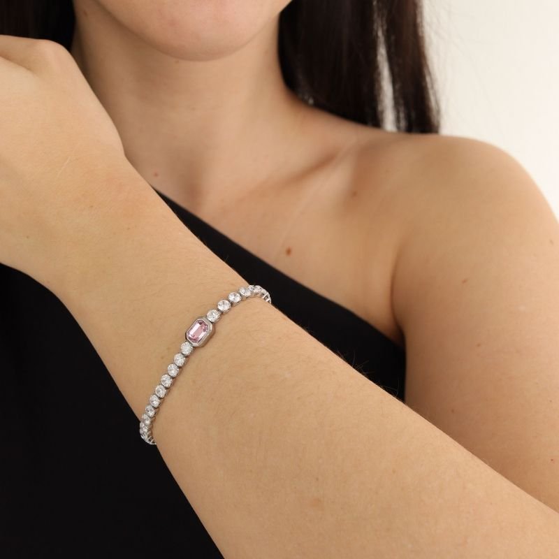 A Pulseira Riviera Pedrinha em Aço Inox (Linha Premium) é delicada e elegante. Com brilho sutil ao longo de toda a peça, ilumina o pulso na medida certa — perfeita para o dia a dia e também para momentos especiais.
