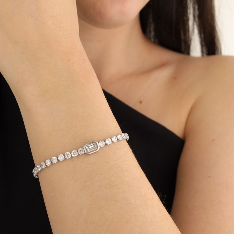 A Pulseira Riviera Pedrinha em Aço Inox (Linha Premium) é delicada e elegante. Com brilho sutil ao longo de toda a peça, ilumina o pulso na medida certa — perfeita para o dia a dia e também para momentos especiais.